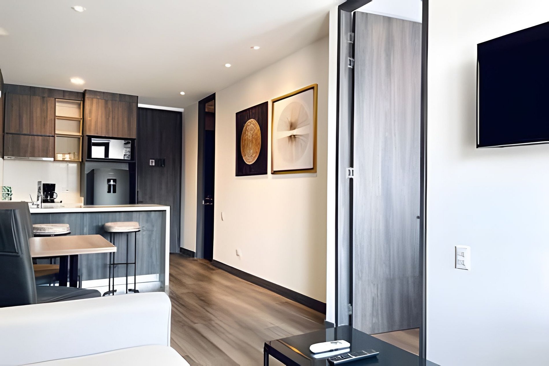 Disfruta de comodidades como Wi-Fi, cocina equipada, parqueadero gratuito y areas comunes como Gimnasio, restaurante con room service.